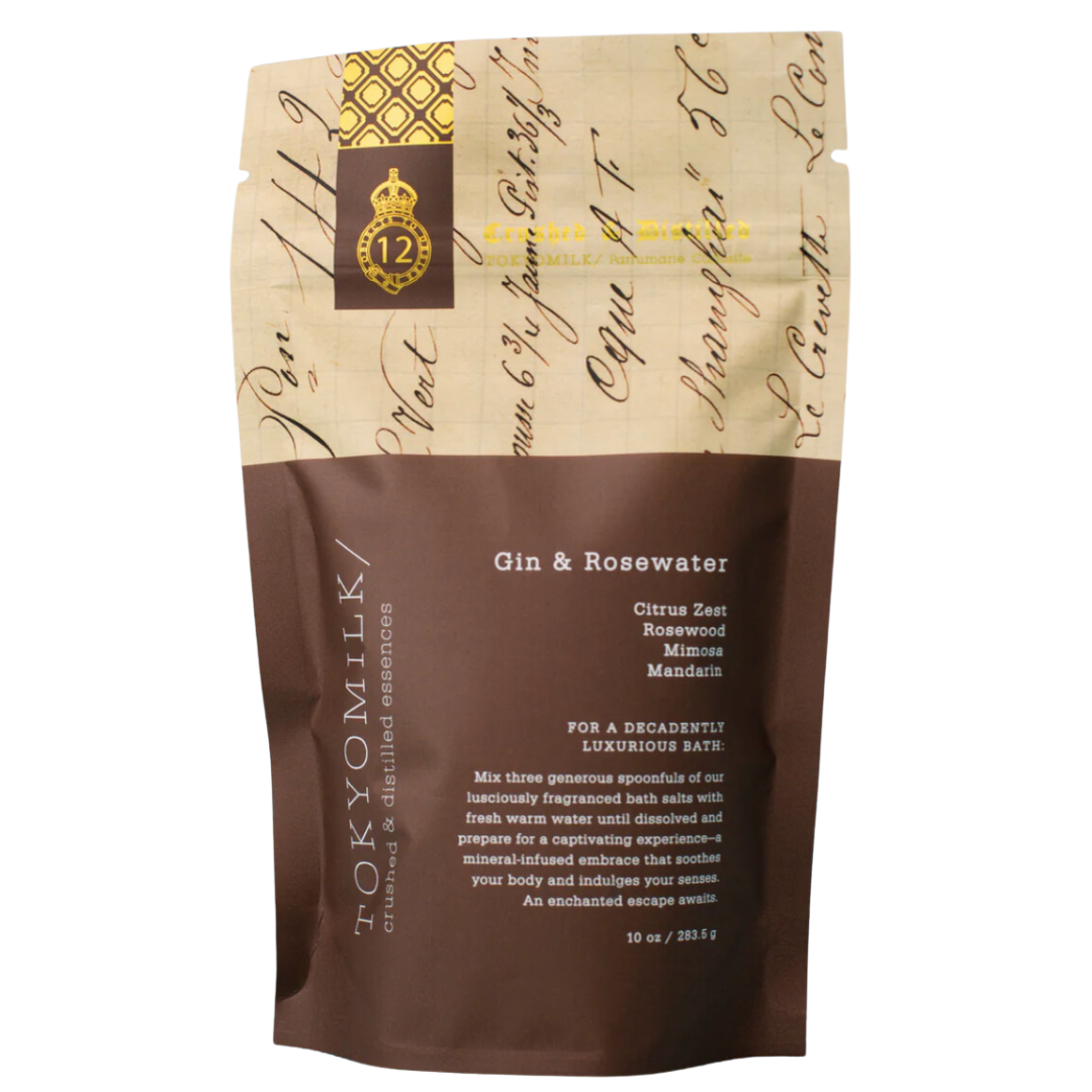 Gin & Rosewater Salt Soak. Gift yourself or a loved one the ultimate bath experience with this decadent, intoxicating bath soak. Immerse in luxury as exfoliating sea salt smooths your skin, while an unexpected blend of crushed and distilled essences helps you slip away from reality. Infused with a beautiful balance of Citrus Zest, Rosewood, Mimosa, and Mandarin, this soak transforms any bath into a rejuvenating escape. Perfect for relaxation, this bath soak makes an ideal addition to any gift box or care package. Whether you're treating yourself to a calming self-care ritual or gifting someone special, the Gin & Rosewater Salt Soak offers a transformative experience at a moment’s notice. Give the gift of indulgence and relaxation with this luxurious soak, designed to elevate your bath time with every use.